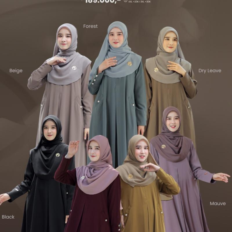 Detail mewah & nyaman: * Variasi list cantik di bagian abaya & lengan * Kancing mutiara elegan di saku kanan-kiri * Kancing mutiara di manset * Busui friendly (sleting depan) * Manset sleting (wudhu friendly) * Saku kanan & kiri * Ploi bagian depan (jatuhnya anggun) * Cutting A-line → nyaman banget dipakai daily
