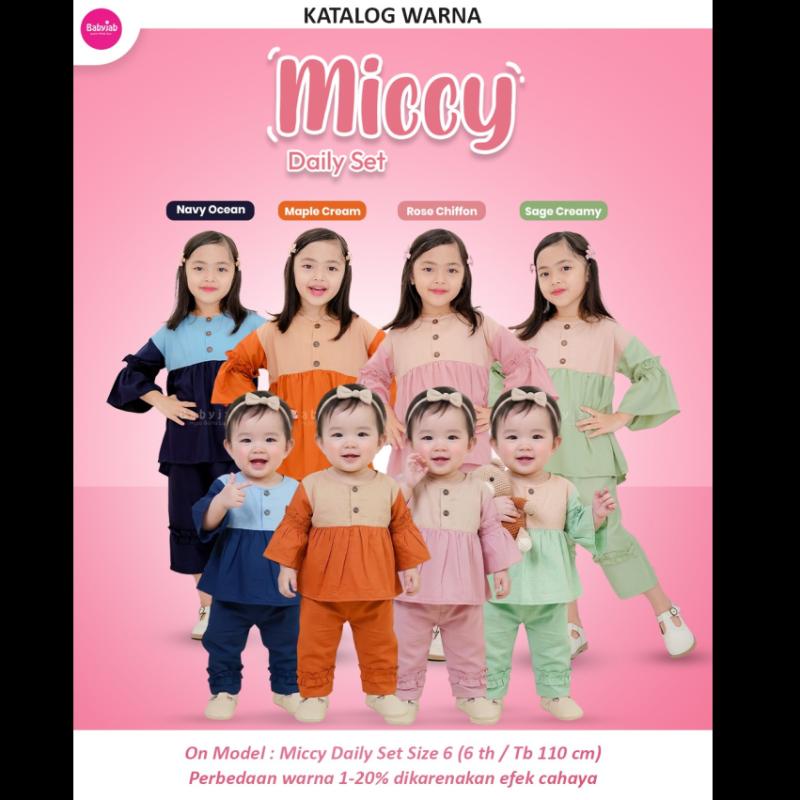 👚 MICCY DAILY SET Tampil Ceria & Nyaman Seharian By. Babyjab X Jilbabkakak Si kecil aktif seharian ?Tenang, Miccy Daily Set siap jadi andalan 🌟 Dengan desain lucu yang modis dan bahan super adem, setelan ini cocok banget buat dipakai si kecil di rumah 😍 Didesain khusus dengan cutting lucu & detail ruffle, tampilannya manis banget dan tetap nyaman untuk bergerak bebas seharian 💃🏻 Terbuat dari material Rayon Twill yang lembut dan adem, si kecil pasti betah dan anti gerah sepanjang hari 🧚‍♀️ Tersedia 4 Warna Gemash 🌊 Navy Ocean 🍯 Maple Cream 🌷 Rose Chiffon 🌿 Sage Creamy