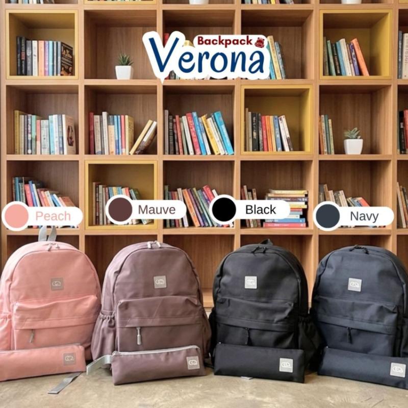 *Verona Backpack* Untuk sekolah oke, kuliah pun masuk. Bagpack yang bukan cuma keren tapi juga siap dipakai kemana aja.. ✅ Semi waterproof, jadi gak panik lagi kecipratan air ✅ Muat laptop, aman dan praktis ✅ Free pencil case, bonus biar makin lengkap SPESIFIKASI 🎒 Terbuat dari material bimo sintetis semi waterproof 🎒 FREE pencil case 🎒 Tali tas adjustable 🎒 Kompartemen - 1 resleting utama yang roomy - 1 resleting depan untuk perintilan atau alat tulis - 1 resleting jaring di dalam tas - 1 slop untuk laptop dilengkapi strep 🎒 Gramasi 450g 🎒 Size Chart : - Tas P 30cm | L 14cm | T 36cm - Pencil case P 20cm | L 9cm 🎒 Pilihan warna : Black, Navy, Peach dan Mauve 🎒 Best Price : ~Rp. 199.000~👉🏻 Rp. 169.000