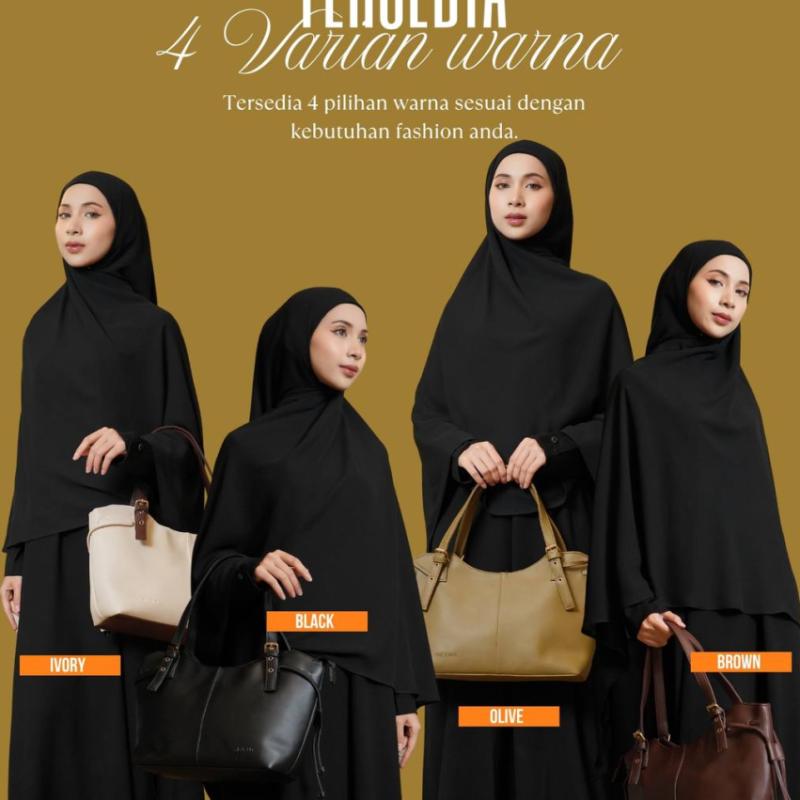 SHAFEEYA BAG Material used : Matte Synthetic Leather berbahan halus, tebal, kokoh, dengan finishing matte 🌸Size : P : 41 L : 10 T : 23 Berat : 550 SPESIFIKASI: - 1 Compartment Utama yang luas dengan zipper - Menggunakan lining satin -Terdapat kantong di bagian dalam tas - emboss signature NEYNA di bagian depan kantong - strap handle dengan aksen gasper 🌸terdiri dari 4 warna : Black Brown ivory olive