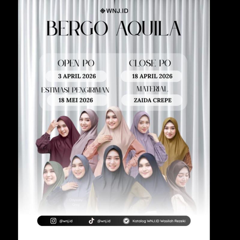 🌸 BERGO AQUILA 🌸 Bismillahirrohmanirrohim.... MasyaAllah tabaarokallah 😍 Get ready for this new Bergo. "BERGO AQUILA". 💗 New Bergo dengan look yang super fine for your daily wear is coming. 😍 Bergo ini terbuat dari bahan yang paling best-seller di WNJ.CO.ID yaitu "Kain Zaida Crepe". Kainnya ringan, lentur, menyerap keringat, gak nyeplak dan uademnya kebangetan. 😍 Siap-siap diserbu dengan warna-warni cantik Bergo Aquila ini ya dear... 😉 And choose your favourite color soon! ❤️‍🔥 Bergo Aquila ❤️‍🔥 ⚘ Best Price 👌 ☆ S - M : 81rb ☆ L - XL: 91r ☆ Jumbo: 101rb When you see this bergo, akuilah kalau Bergo Aquila ini manis. 🤩😁 Designnya keceh abiz! Girly and eye catching. ✨️ Bergo ini terbuat dari bahan "Zaida Crepe". Bahan ini sudah masyhur di kalangan WNJ Lovers. Bahan yang selalu ditanyakan dan dinantikan karena kenyamanannya. Kainnya ringan, lembut, empuk, tidak menerawang, menyerap keringat, adem dan nyaman! Produk dengan bahan ini highly recomended for your daily wear. 🥰 10 pilihan warna bergo ini siap menemanimu beraktifitas sehari-hari. So, decide your color and grab it at WNJ Partner! 😉 Details: ⚘Bahan: Zaida Crepe ⚘Karakteristik kain: Bertekstur pasir dan super duper ringan. Kainnya lembut, elastis, dan yang terpenting menyerap keringat serta tidak menerawang. Cocok di pakai sehari-hari. ⚘Design: Bergo Instan dengan pet busa tipis yang anti tembem. Petnya soft dan kokoh. Bergonya adem dan nyaman dipakai sehari-hari. ⚘Cutting oval pada bagian belakang. Looknya trendy dan membuat tampilan makin Elegant. ⚘Cutting V pada bagian depan. Simple, cantik dan membuat tampilan makin girly. ⚘ Terdapat Metal Tag Sign WNJ pada bagian depan bergo sebelah bawah, membuat bergonya jadi tambah classy and exclussive. ⚘Terdapat 15 pilihan warna yang menarik: 1. Black 2. Midnight Blue 3. Red Mahogani 4. Soft Lavender 5. Peach Rose 6. Soft Choco 7. Honey Ginger 8. Oddysey Grey 9. Dark Sage Green 10. Dusty Purple 11. White 12. Lime 13. Baby Blue 14. Sage 15. Milo ⚘ Size Chart & Berat Item: • S: PD 70 PB 80 LM 28 (150gr) • M: PD 80 PB 90 LM 28 (200gr) • L : PD 90 PB 100 LM 28 (250gr) • XL: PD 100 PB 110 LM 28 (300gr) • JMB: PD 110 PB 120 LM 28 (350gr) ⚘ Packaging menggunakan plastik eco green yang ramah lingkungan. ⚘ • Disclimer Size : 2-3 cm • Disclimer color : Hasil pencahayaan pada saat pemotretan serta resolusi kamera ataupun HP yang digunakan bisa mempengaruhi tampilan pada hasil foto. #bergo #bergoaquila #zaidacrepe #wnj #goodnessintogetherness